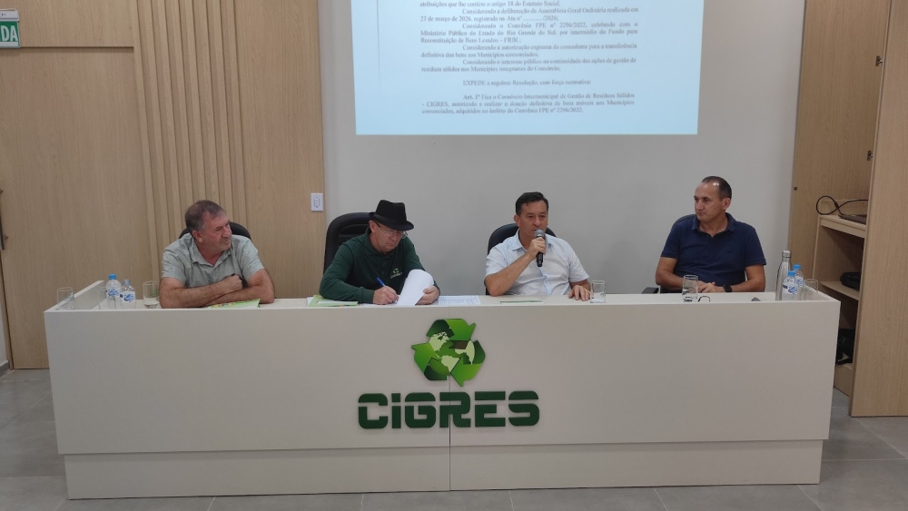 Na tarde desta sexta-feira, 27 de março, o Consórcio Intermunicipal de Gestão de Resíduos Sólidos (CIGRES) realizou a sua assembleia geral ordinária, com a presença de prefeitos e representantes dos municípios consorciados